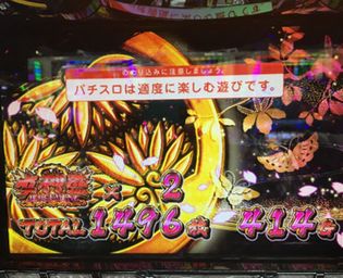 初期G数の394Gと、上乗せでの20Gとの合計414Gの1496枚で終了。
