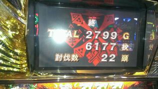 1時間ほどしか打っていないが、目が疲れたため手持ちの500枚のコインを何かで打ち切ろうと思い、適当に「モンスターハンター」に座った。