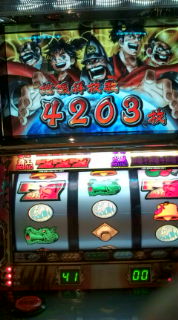 デコトラッシュ中にて。 入った!と思ったら転落リプ揃って終了…何? 【管理人より】 恐怖の液晶バグのようで・・・ 液晶がバグり押し順がわからず、そこで運悪く押し順リプが成立してしまうと、転落リプが揃ってART終了、となってしまうことがあるようです。 この画面になった時は、しばらく待っていると正常画面に戻るとも言われているようですが・・・どっちにしろ厳しいバグです。。 |