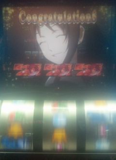 喰霊-零より。 レバーONフリーズの方です。 しかしながら、1500枚程度で終了。 確か獲得枚数平均2900枚だった気が・・・ でも、引けた自分に拍手したいです。 |