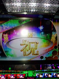 化物語。 通常時に怪異文字が大までいったのに解呪にいかず、スルーかと思った数ゲーム後に全部祝のルーレット発生! まぁただの倖時間で150枚で駆け抜けましたけど。 |
