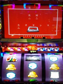 化物語。 このタイミングでプッシュボタンです。 押しても何も起きないし、このタイミングでプッシュボタンとかあるのか?と思いパシャリ。 因みに結果は弱チェリーでした。 そして、そのままボーナス! 稼働し続けて1年以上経ちますがこれは初めての経験でした。 |