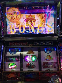 けっこう珍しいレア小役成立と同時告知でボーナス!