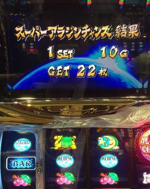 そして、スーパーアラジンチャンス中に「単チェを引く」いうヒキをその日に持っているかが、勝負の分かれ目ってところみたいです。